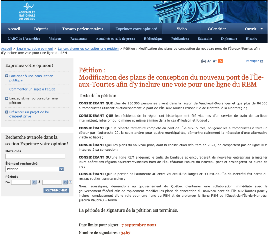 For decades citizens of the island of Ile-Perrot & the Vaudreuil-Soulanges region have been pandered to by candidates of all stripes & successive government officials with empty promises to resolve the transportation grid nightmare problems we’ve been forced to face. However, this new day & age of social media now permits us to speak more directly to our elected officials. At this critical juncture in how we move forward as a region and a province, we the people have had enough of the empty promises, and we’ve decided to take matters into our hands and are starting to speak up! Below is a recent list of lobbying attempts we have made, and more are in the works! Considering registering so as to be informed of and possibly joining us in future ‘calls to action’!